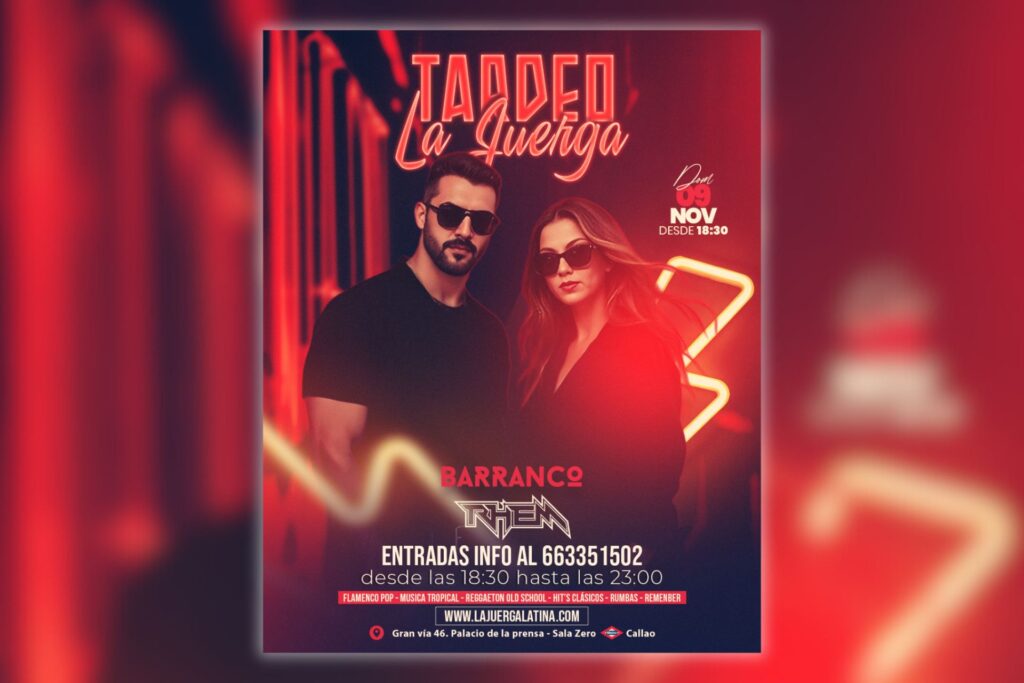 🔥 TARDEO LA JUERGA EN BARRANCO CLUB🔥✨ Este domingo 09 de NOVIEMBRE disfruta del tardeo más divertido en el corazón de Madrid.Diversión asegurada, buena música, el mejor ambiente y un flow que pondrá a todos a bailar y cantar. 🎶💃 🎧 En cabina: DJ Rhem🎶 Música tropical · Flamenquito · Reggaetón old school · Hits 90’s […]