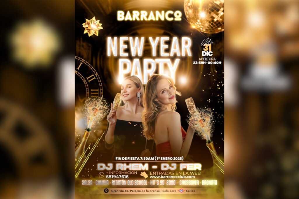 🎊✨ NEW YEAR PARTY – BARRANCO ✨🎊¡Despide el 2025 y recibe el 2026 en la fiesta más épica del centro de Madrid!Vive una noche inolvidable en Gran Vía 46, con música, energía y diversión asegurada. 🥂🎉 🎧 LINE UP ESPECIAL DE FIN DE AÑO:🔥 DJ Rhem🔥 DJ Fer 🎶 Música toda la noche:Reggaetón · Salsa · […]